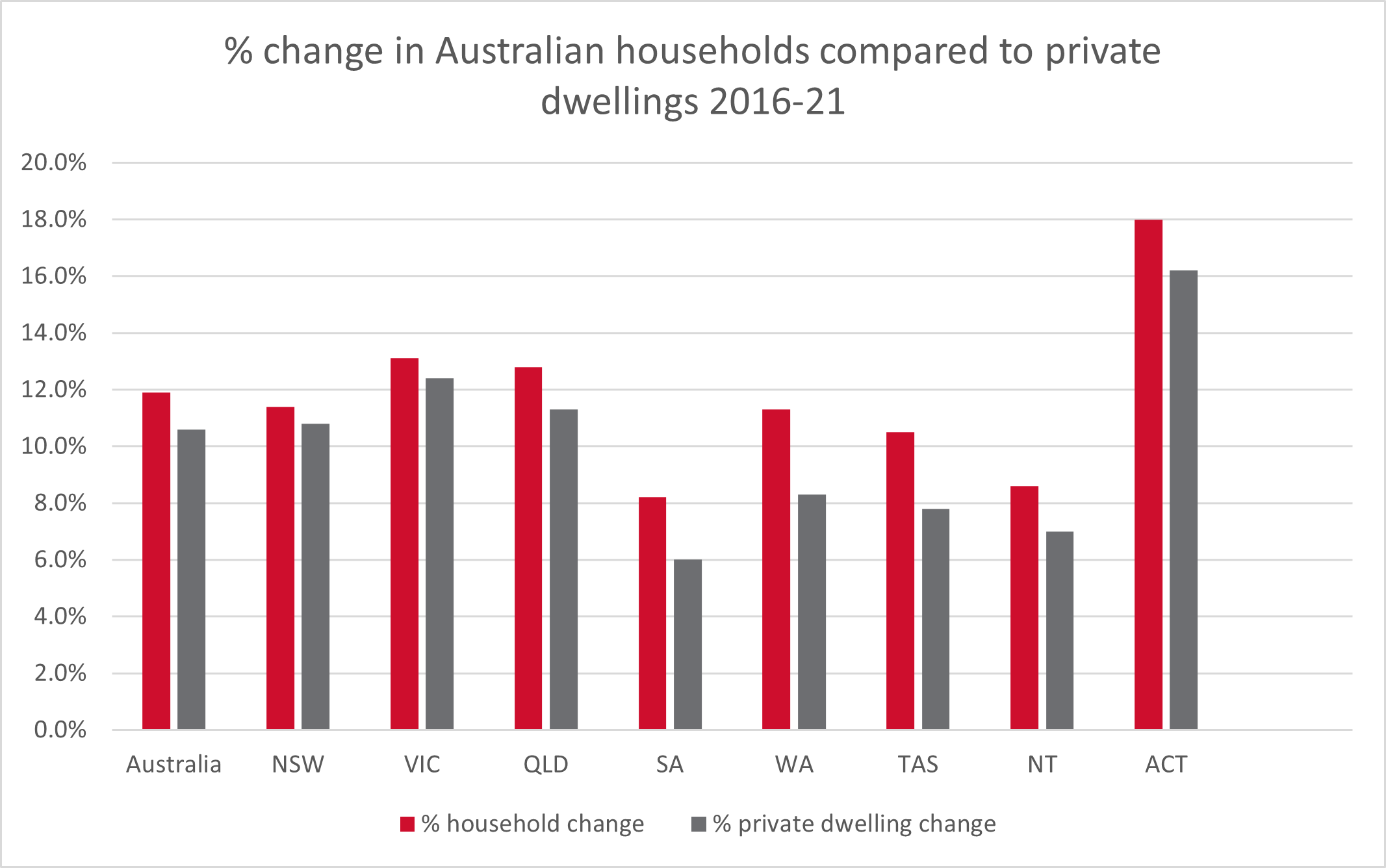 Figure 3: Percentage change in Australian households compared to private dwellings 2016-2021