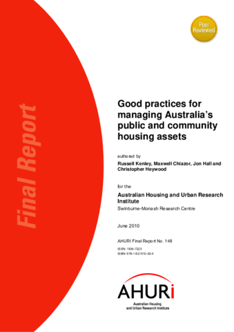Report Social and affordable housing 14th June 2010 Good practices for managing Australia's public and community housing assets Russell Kenley, Maxwell Chiazor, Jon Hall, Christopher Heywood view report